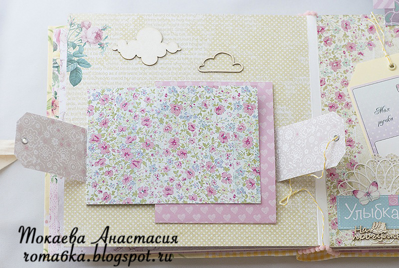 Альбом для новорожденной малышки Анастасии. Ажурный чипборд от Креатив-артшопп не может не вдохновлять на такую нежность. Альбом на 43 фотографии 10*15 и 3 дополнительных фото 9*13. Бумага собрана из разных коллекции Scrapberry's: Зайка Ми, Мамины сокровища, Afternoon tea, Волшебная страна и даже Подружки. Отлично они все сочетаются между собой.
